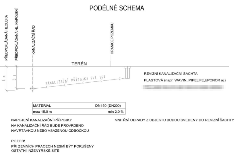 - Jmenovitá světlost kanal. přípojky je DN150mm, popřípadě DN200 mm