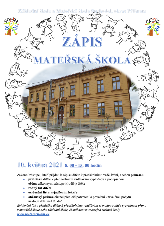 Zasílají pozvánku na zápis do 1. ročníku ZŠ a školky