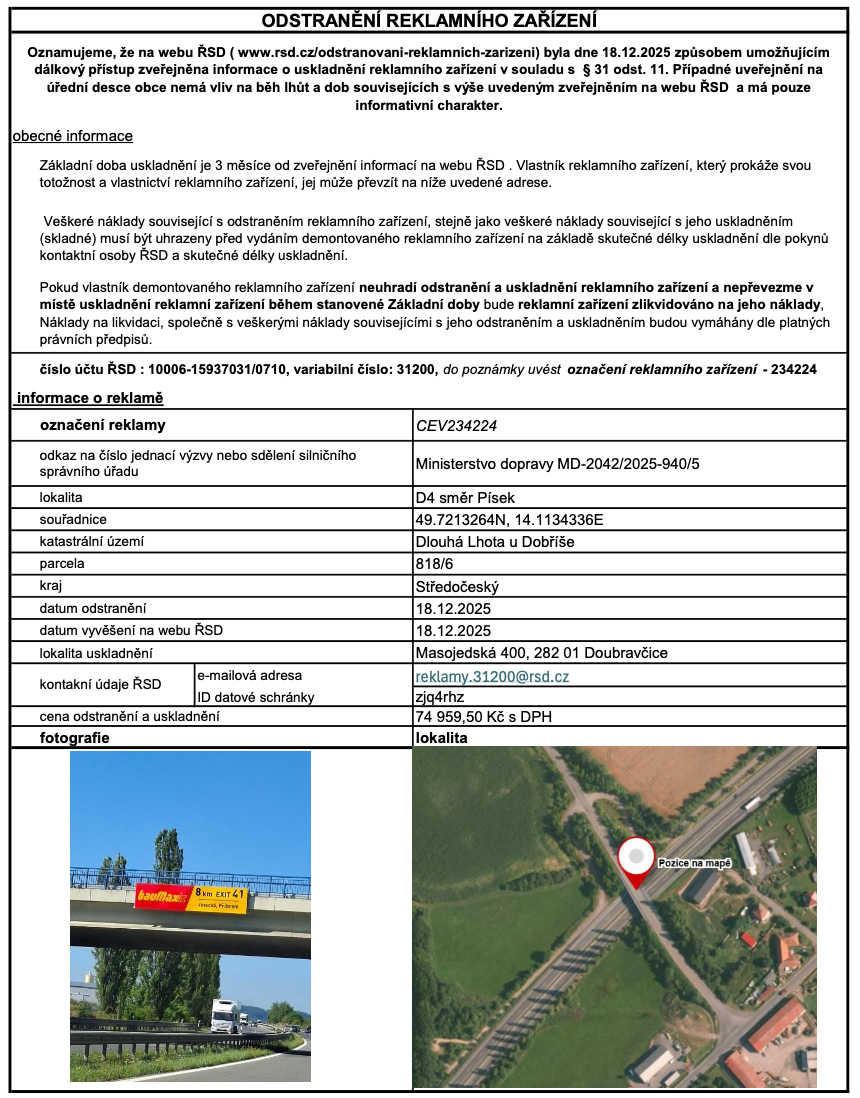 | ODSTRANĚNÍ REKLAMNÍHO ZAŘÍZENÍ Úřední deska | ||